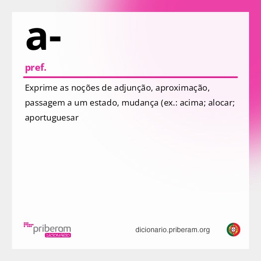 Exprime as noções de adjunção, aproximação, passagem a um estado, mudança (ex.: acima; alocar; aportuguesar).