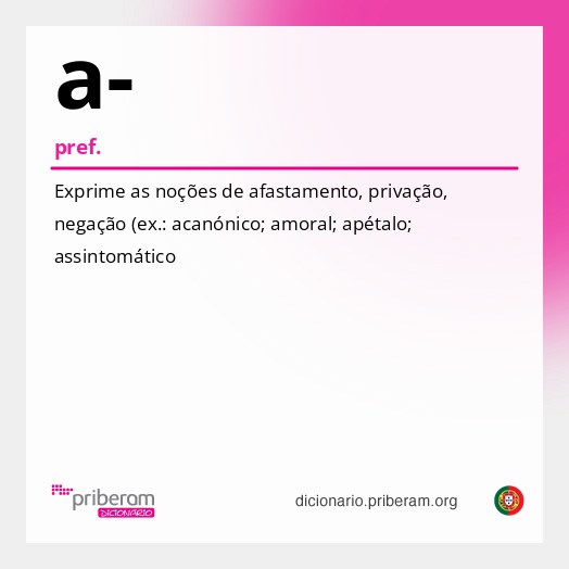 Exprime as noções de afastamento, privação, negação (ex.: acanónico; amoral; apétalo; assintomático).
