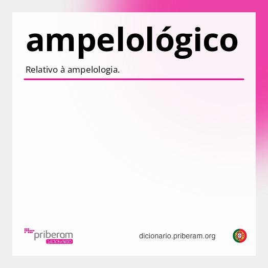 ampelológico Sabia que? Pode consultar o significado de qualquer palavra abaixo com um clique. Experimente! ampelológicoampelológico ( am·pe·lo·ló·gi·co am·pe·lo·ló·gi·co ) adjectivoadjetivo Relativo à ampelologia. Origem:ampelologia + -ico. Secção de palavras relacionadas