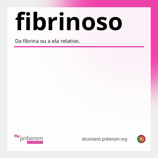 fibrinoso Sabia que? Pode consultar o significado de qualquer palavra abaixo com um clique. Experimente! fibrinosofibrinoso |nô| |nô| ( fi·bri·no·so fi·bri·no·so ) adjectivoadjetivo Da fibrina ou a ela relativo. Plural: fibrinosos |nó|. Plural: fibrinosos |nó|. Secção de palavras relacionadas