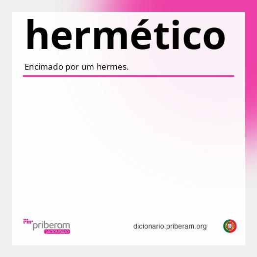 hermeticamente A forma hermeticamentepode ser [derivação de herméticohermético] ou [advérbio]. Sabia que? Pode consultar o significado de qualquer palavra abaixo com um clique. Experimente! hermeticamentehermeticamente ( her·me·ti·ca·men·te her·me·ti·ca·men·te ) advérbio De modo hermético. Origem:hermético + -mente. Secção de palavras relacionadas herméticohermético ( her·mé·ti·co her·mé·ti·co ) adjectivoadjetivo 1. Encimado por um hermes. 2. Completamente fechado (de modo que nem o ar possa entrar, nem o fumo ou vapor sair). = CERRADO, SELADO, VEDADO 3. Que é difícil de compreender. = INTRINCADO, OBSCURO ≠ INTELIGÍVEL 4. Relativo à alquimia. Origem:francês hermétique. Secção de palavras relacionadas