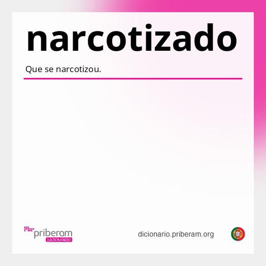 narcotizado A forma narcotizadopode ser [masculino singular particípio passado de narcotizarnarcotizar] ou [adjectivoadjetivo]. Sabia que? Pode consultar o significado de qualquer palavra abaixo com um clique. Experimente! narcotizadonarcotizado ( nar·co·ti·za·do nar·co·ti·za·do ) adjectivoadjetivo Que se narcotizou. Origem:particípio de narcotizar. Secção de palavras relacionadas narcotizarnarcotizar ( nar·co·ti·zar nar·co·ti·zar ) ConjugarConjugar Conjugação:regular. Particípio:regular. verbo transitivo 1. Aplicar narcótico a. 2. Entorpecer; adormecer. 3. [Figurado] [Figurado] Causar sono (por ser enfadonho). Origem:narcót[ico] + -izar. Secção de palavras relacionadas