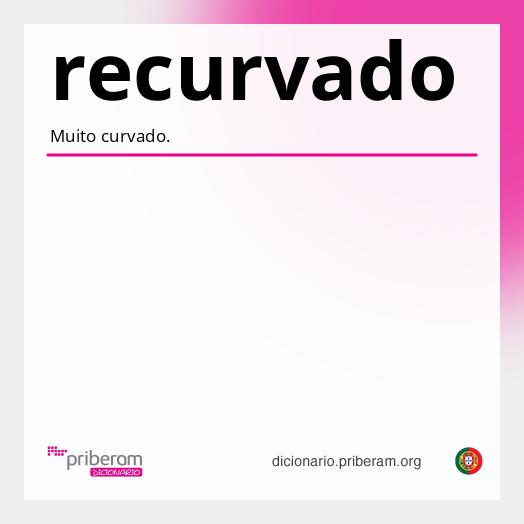 recurvado A forma recurvadopode ser [masculino singular particípio passado de recurvarrecurvar] ou [adjectivoadjetivo]. Sabia que? Pode consultar o significado de qualquer palavra abaixo com um clique. Experimente! recurvadorecurvado ( re·cur·va·do re·cur·va·do ) adjectivoadjetivo 1. Muito curvado. 2. Muito inclinado para o chão. 3. Torcido, dobrado. Origem:particípio de recurvar. Secção de palavras relacionadas recurvarrecurvar ( re·cur·var re·cur·var ) ConjugarConjugar Conjugação:regular. Particípio:regular. verbo transitivo 1. Curvar novamente. 2. Encurvar pela extremidade; inclinar. Origem:latim recurvo, -are. Secção de palavras relacionadas
