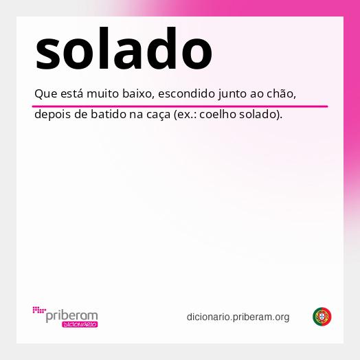 Confrontar: colado..&definitions[]=%7CConjunto%20de%20pe%C3%A7as%20na%20parte%20inferior%20do%20sapato%20que%20fica%20entre%20o%20p%C3%A9%20e%20o%20ch%C3%A3o%20(ex.%3A%20a%20sola%20%C3%A9%20a%20pe%C3%A7a%20externa%20inferior%20do%20solado).)